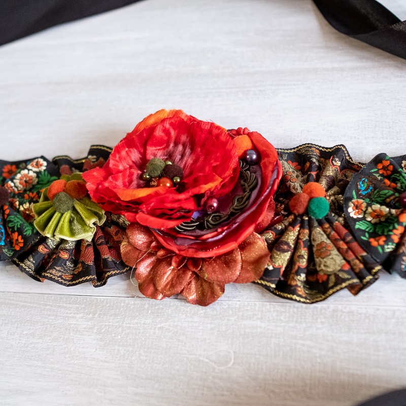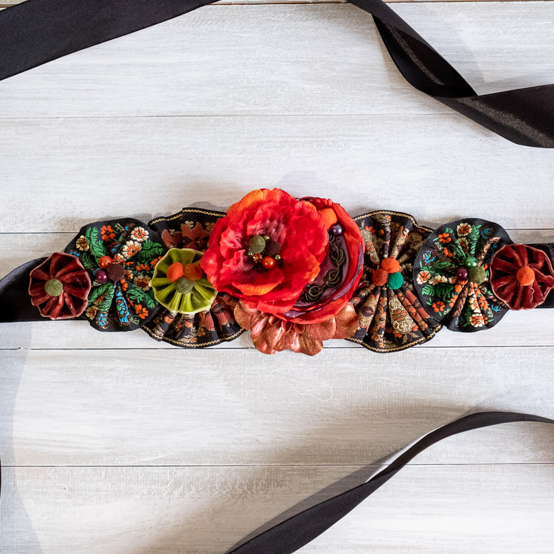 Un brâu floral spectaculos pentru femei autentice și încrezătoare în stilul lor bine definit! Unicitatea și eleganța sunt caracteristicile definitorii ale acestui accesoriu.