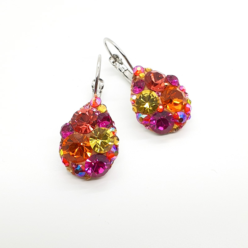 Acești cercei sunt povestea de iubire dintre strălucirea cristalelor și imaginați creatoare. Este un joc continuu de culori, forme, și strălucire. Sunt realizate prin tehnica ceralun care îți dă libertatea să poți crea tot ce-ți imaginezi. Cerceii sunt creați cu cristale de diverse dimensiuni și forme iar baza este din inox. Acești cercei plini de strălucire și rafinament vor scoate din anonimat orice ținută. Alege să strălucești cu accesoriile Emilys.