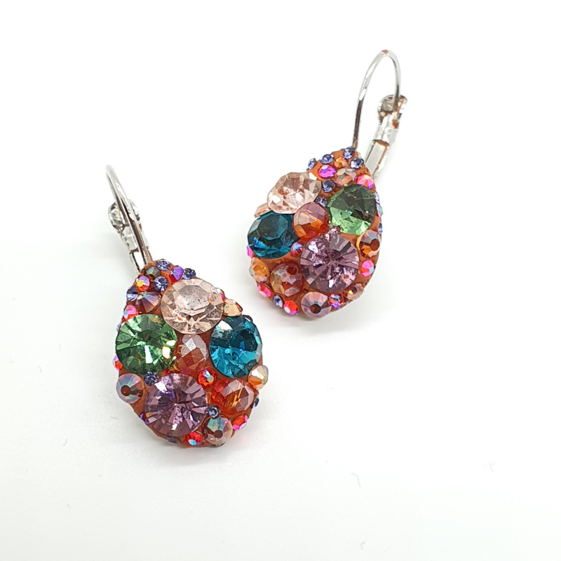 Acești cercei sunt povestea de iubire dintre strălucirea cristalelor și imaginați creatoare. Este un joc continuu de culori, forme, și strălucire. Sunt realizate prin tehnica ceralun care îți dă libertatea să poți crea tot ce-ți imaginezi. Cerceii sunt creați cu cristale de diverse dimensiuni și forme iar baza este din inox. Acești cercei plini de strălucire și rafinament vor scoate din anonimat orice ținută. Alege să strălucești cu accesoriile Emilys.