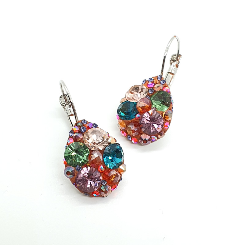 Acești cercei sunt povestea de iubire dintre strălucirea cristalelor și imaginați creatoare. Este un joc continuu de culori, forme, și strălucire. Sunt realizate prin tehnica ceralun care îți dă libertatea să poți crea tot ce-ți imaginezi