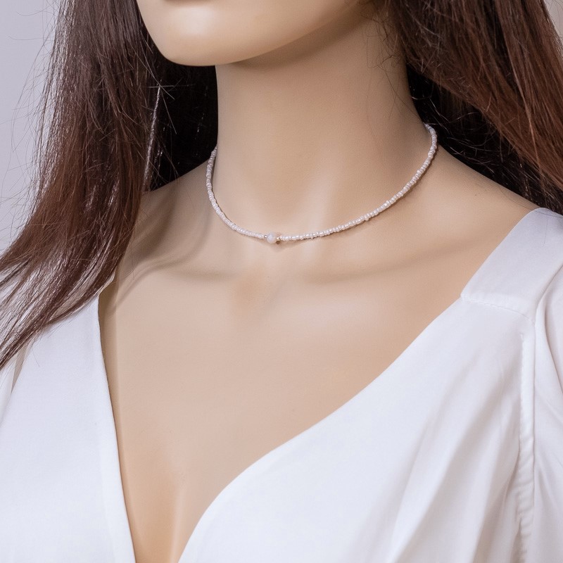 Un colier cu mărgele în stil minimalist, cu un design rafinat și versatil, care permite purtarea lui atât la ținutele casual cât și la cele elegante, fiind ideal pentru orice stil vestimentar.