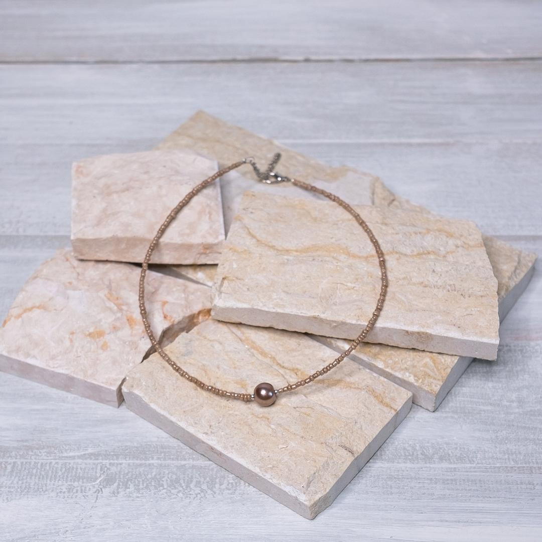 Un colier cu mărgele în stil minimalist, cu un design rafinat și versatil, care permite purtarea lui atât la ținutele casual cât și la cele elegante, fiind ideal pentru orice stil vestimentar.