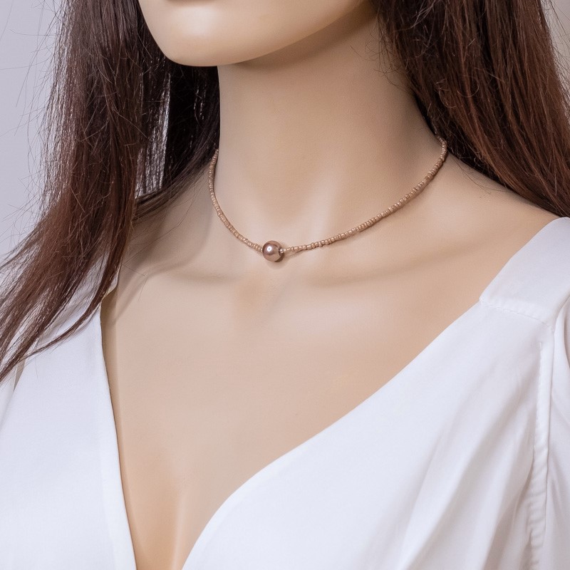 • Colier elegant/casual cu mărgele, la baza gâtului